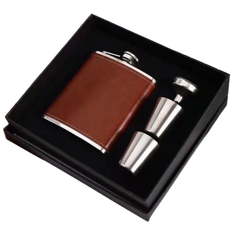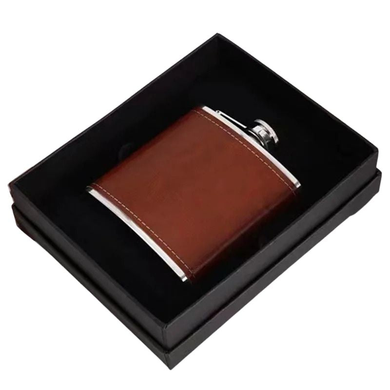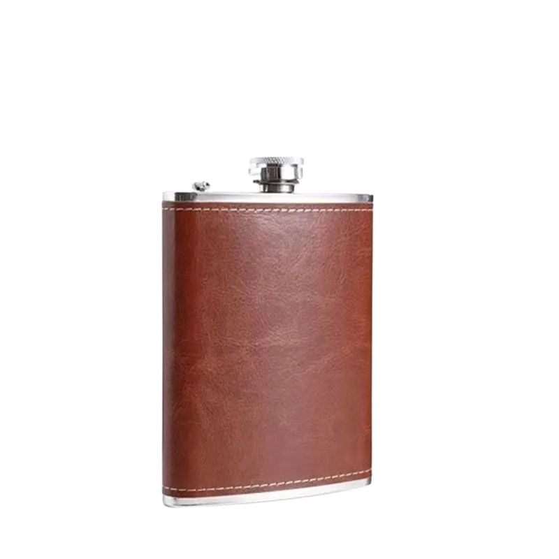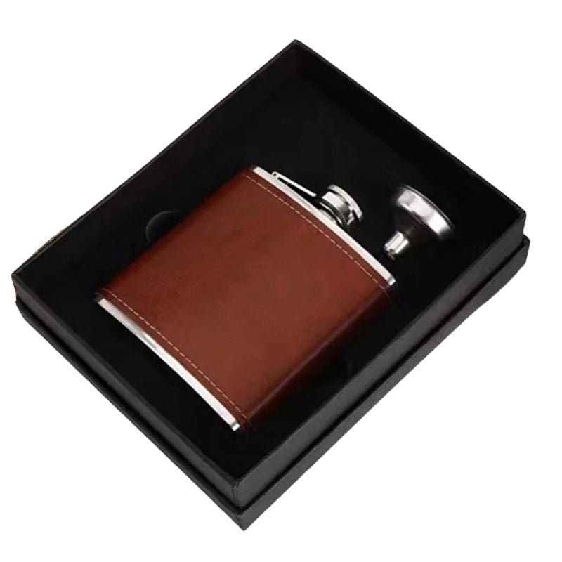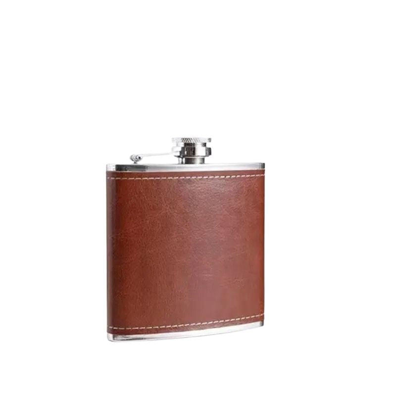 Denna fickplunta i rostfritt stål med läderfodral är ett slitstarkt och portabelt dryckeskärl anpassat för camping, friluftsliv och resor. Den kompakta storleken gör pluntan enkel att bära i ficka, ryggsäck eller packning utan att ta onödig plats. Det rostfria stålet ger en tålig konstruktion som lämpar sig väl för utomhusbruk, medan läderfodralet bidrar till bättre grepp och skydd. Pluntan finns i flera kapacitetsalternativ för att passa olika behov och användningsområden.