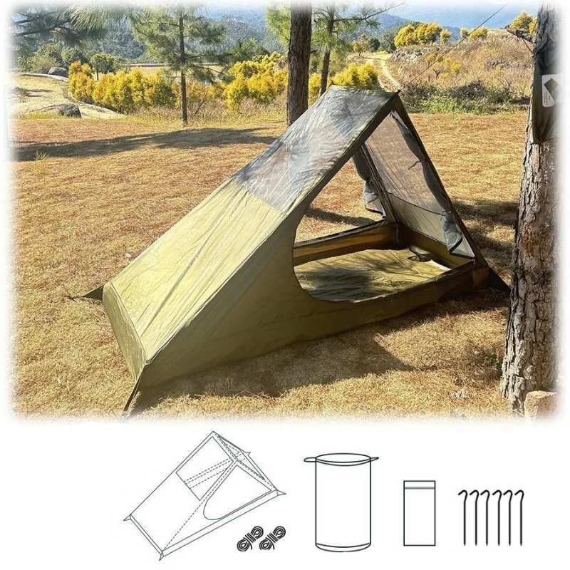 Tältets material är noggrant utvalt för varma och torra förhållanden. Ovandelen består av 190T polyester tillsammans med B5 mesh, vilket ger god ventilation och effektivt insektskydd. Botten är tillverkad i slitstarkt Oxford-tyg som skyddar mot markfukt och slitage. Den ventilerande konstruktionen minskar kondens och bidrar till en svalare sovmiljö under varma nätter. Tältets enkla enrumsdesign ger gott om plats för en person och personlig utrustning, samtidigt som det skapar en privat och skyddad sovplats i naturen.