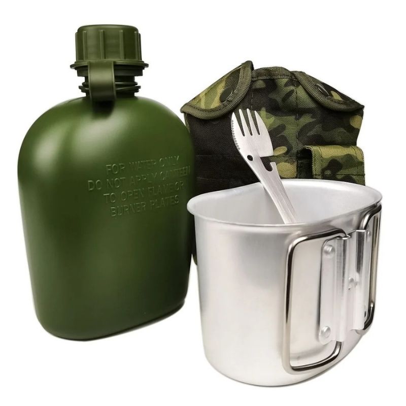 Camo fältflaska i set för camping, vandring och beredskap